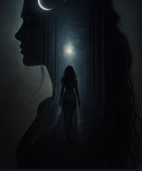 A cinematic double exposure of me in a profile, with a mysterious moonlight lit forest path inside my silhouette. The inner scene shows the woman with long black wavy hair in fitted long sheer dress walking through a dark forest path, tall trees on both sides, glowing moonlight, spotlight, with dramatic crescent moon in the background. Como fazer o Retrato? faça o upload da sua foto no site abaixo e cole o prompt acima. https://aistudio.google.com/prompts/new_chat?model=gemini-2.5-flash-image-preview ×Suporte onlineQuase lá!Para continuarmos o atendimento, por favor informe seu emailIniciar Conversa